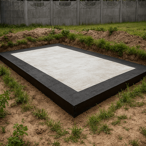 Монтаж опалубки по периметру фундамента, установка арматурного каркаса, рассчитанного под вес конструкции и условия эксплуатации. - Заливка бетона