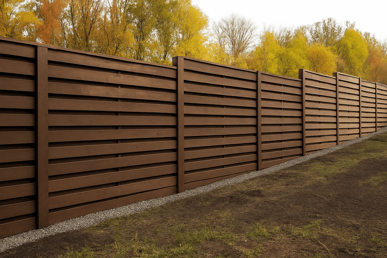 Определяется тип забора: штакетник, горизонтальный или вертикальный профиль, сплошной или с зазорами. Для долговечности используется сухая древесина хвойных пород, обработанная антисептиками и защитными составами. -