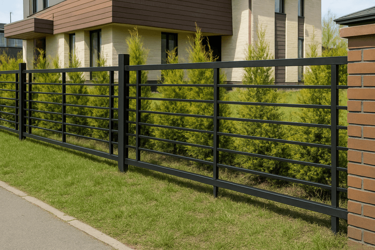 Для объектов с большим протяжением подходит сварной забор из профильной трубы, так как он легко масштабируется и обеспечивает устойчивость к ветровым нагрузкам.
